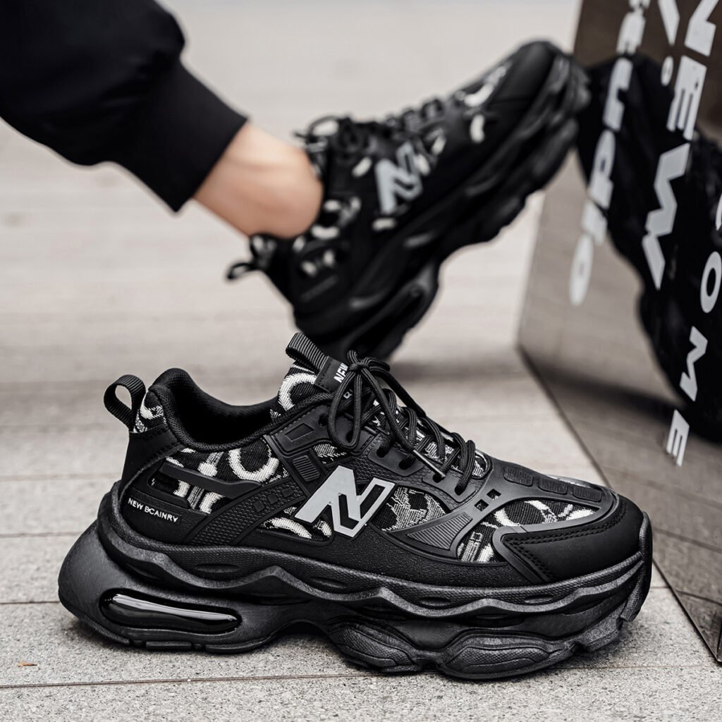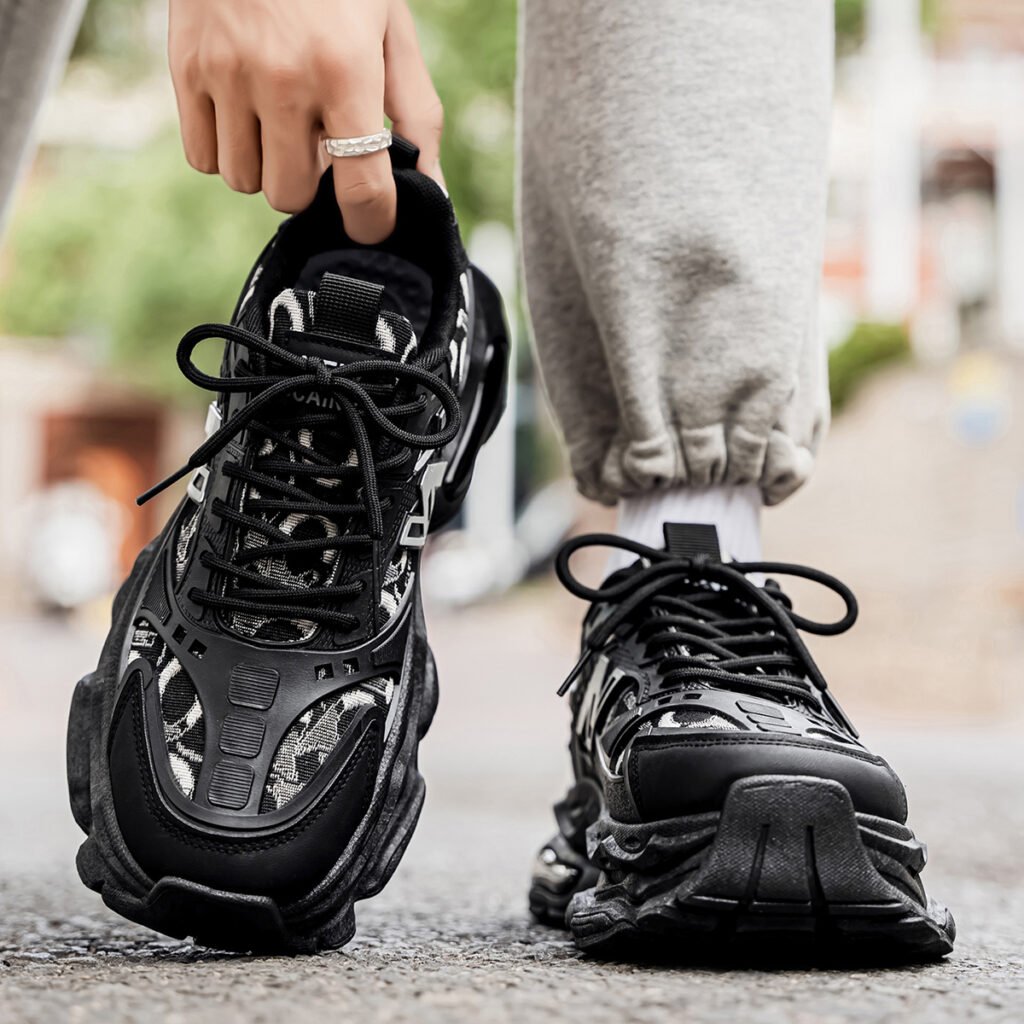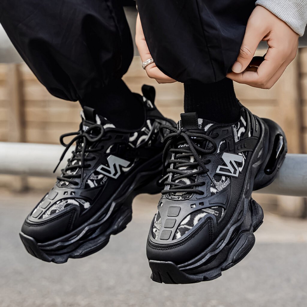 High-top platform dad shoes in trendy black warrior style