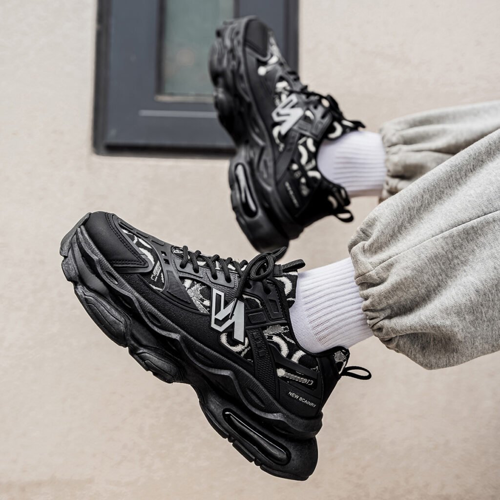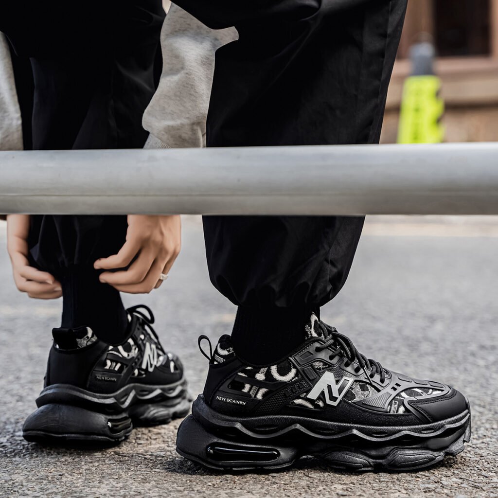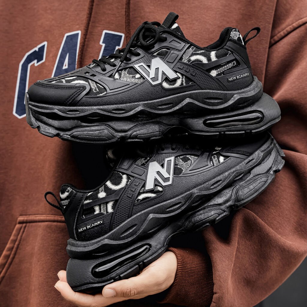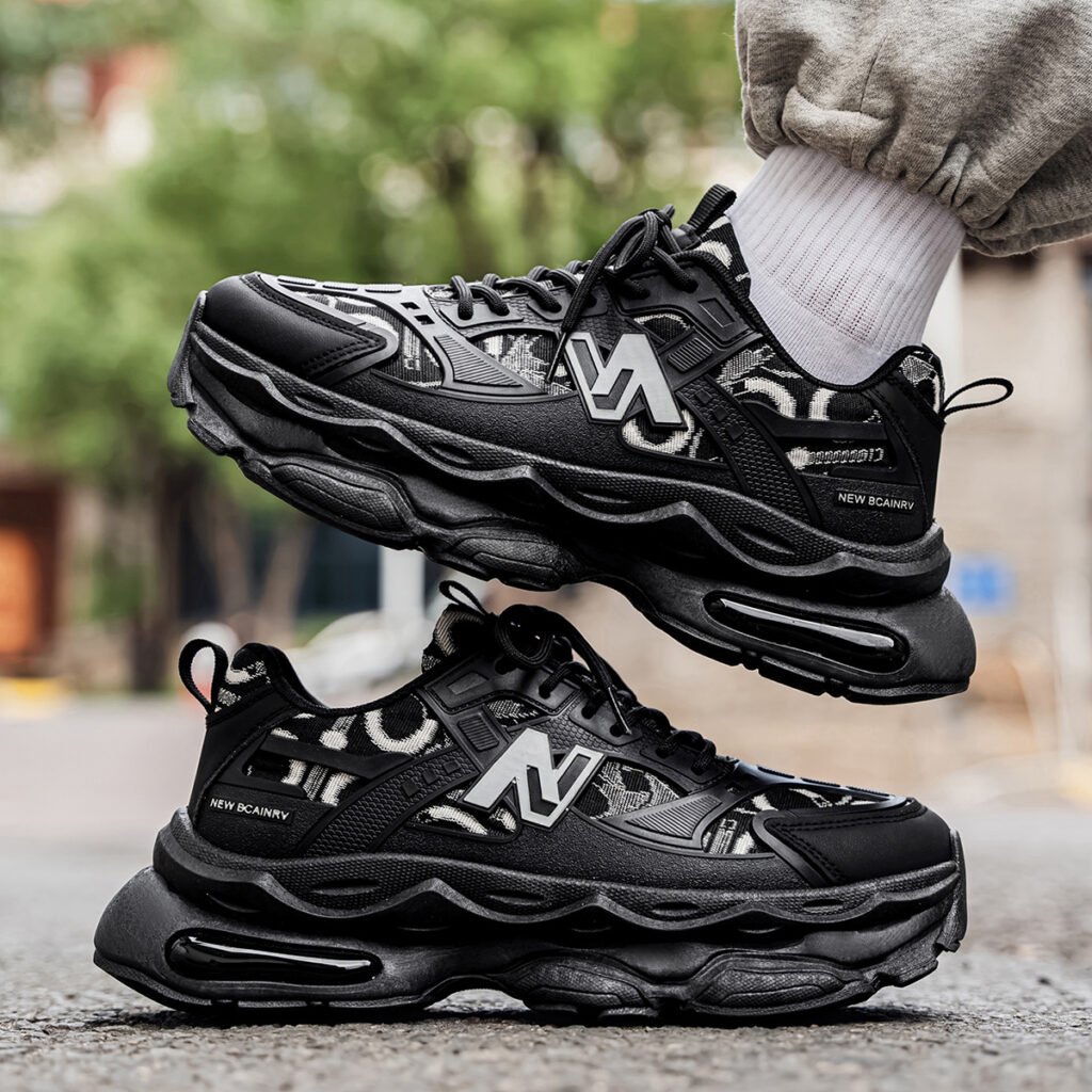 High-top platform dad shoes in trendy black warrior style